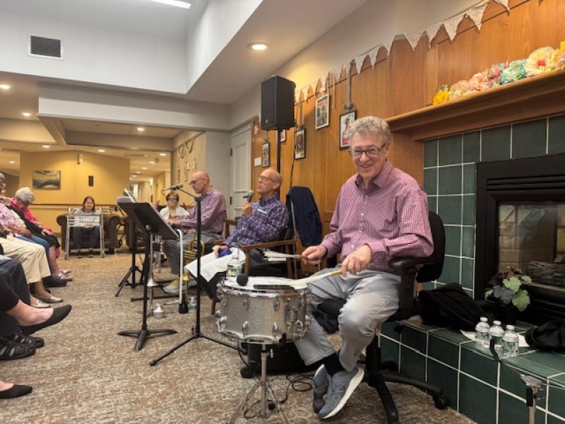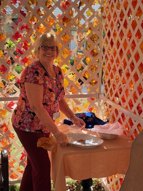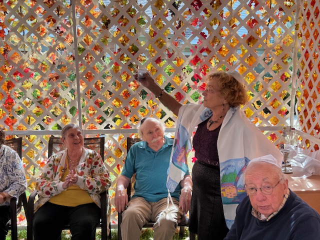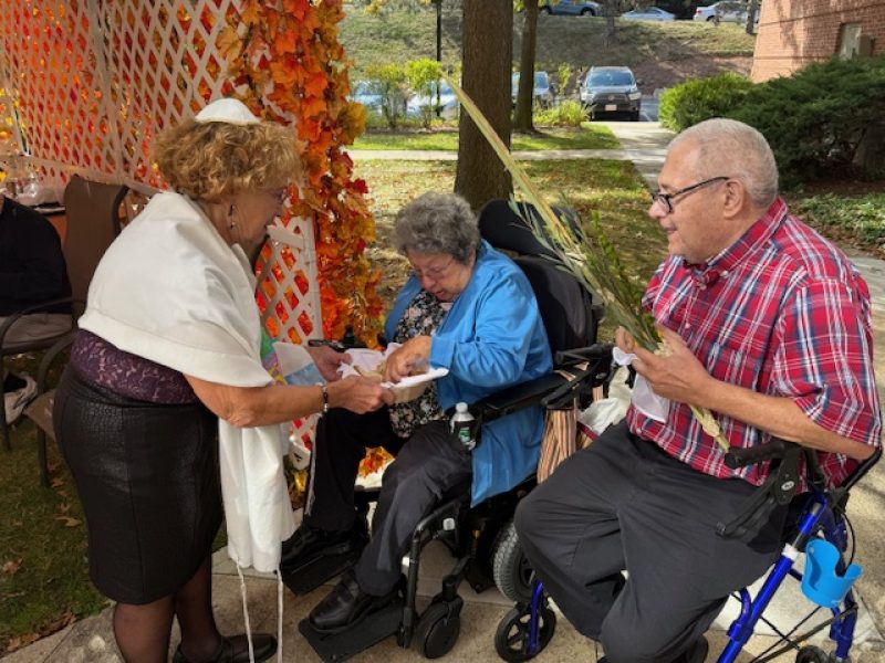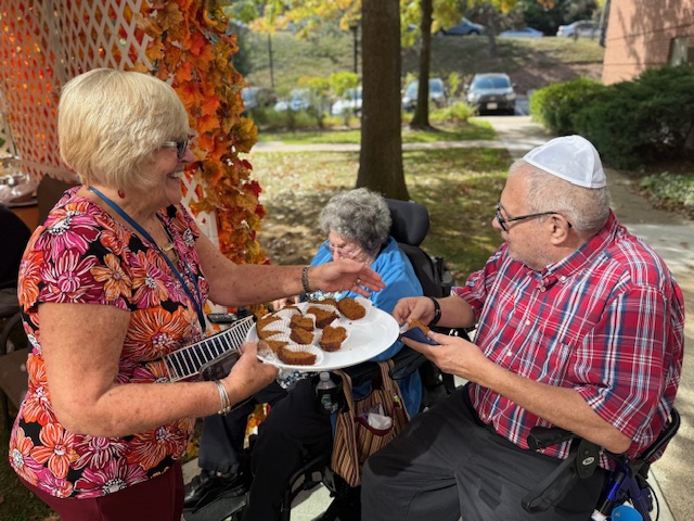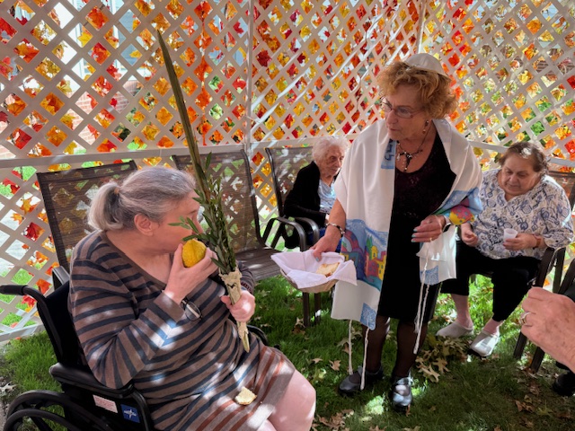 Fall sets the tone for festive celebrations and special events. Our Sukkah was a beautiful sight to behold, full of seasonal charm. Residents enjoyed spending time inside, eating, socializing and reciting prayers. Lively Sukkot songs filled the room. Sukkot is one of the most joyous Jewish holidays and residents, staff and families visited often.
