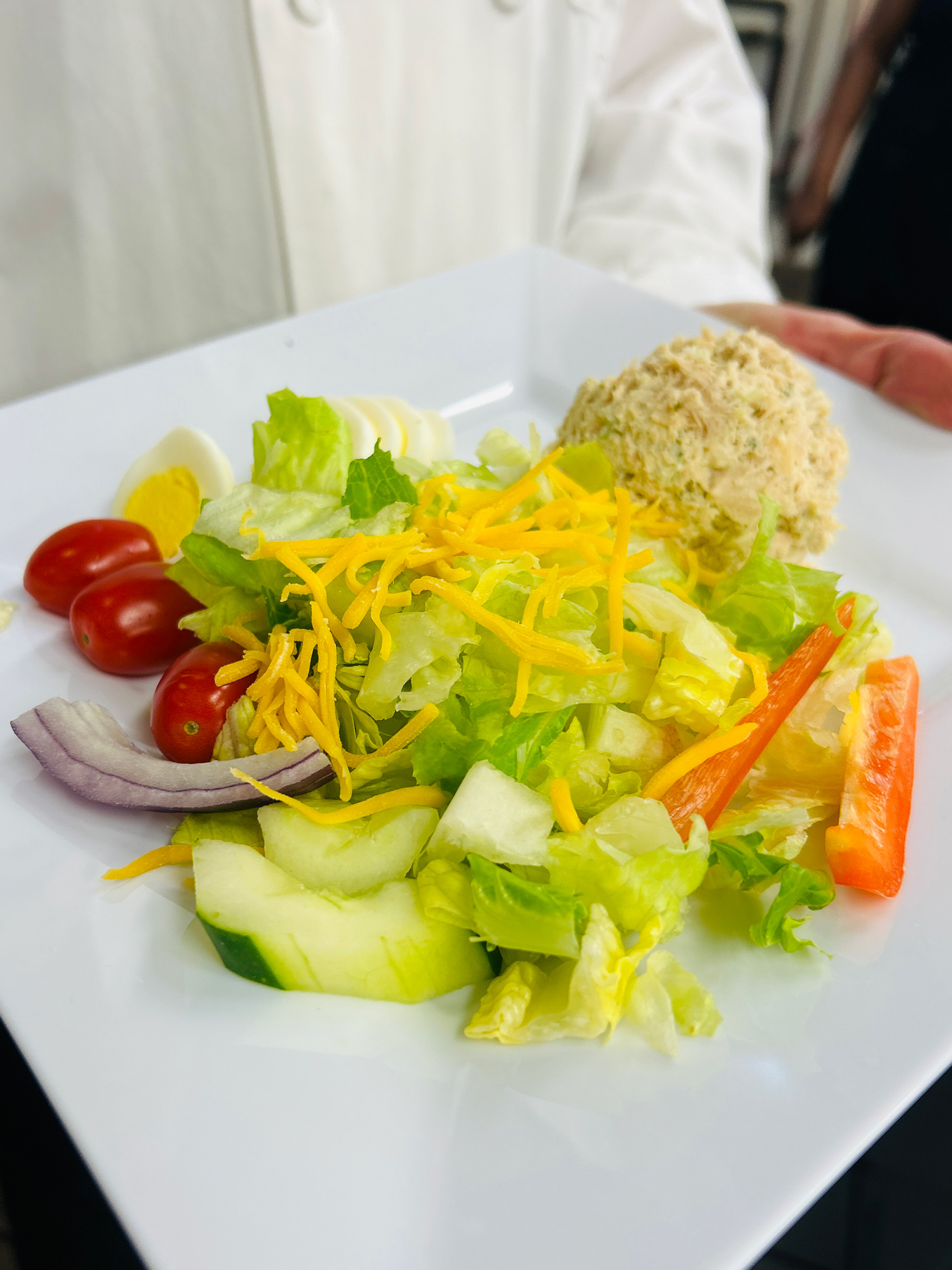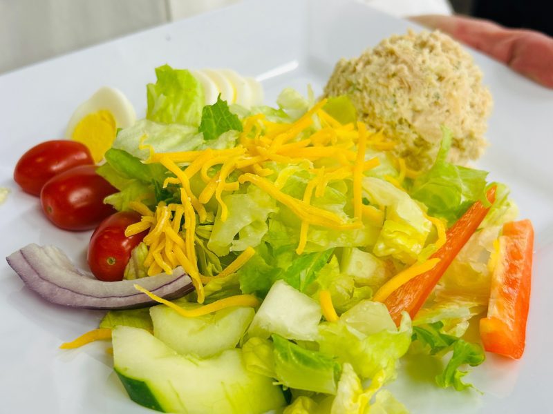 Salmon is another resident favorite. Prepared with olive oil, lemon, fresh herbs, and occasionally za’atar—a traditional Middle Eastern spice blend—this dish reflects the essence of Mediterranean cooking. “I couldn’t have pulled this off ten years ago,” jokes Millard.