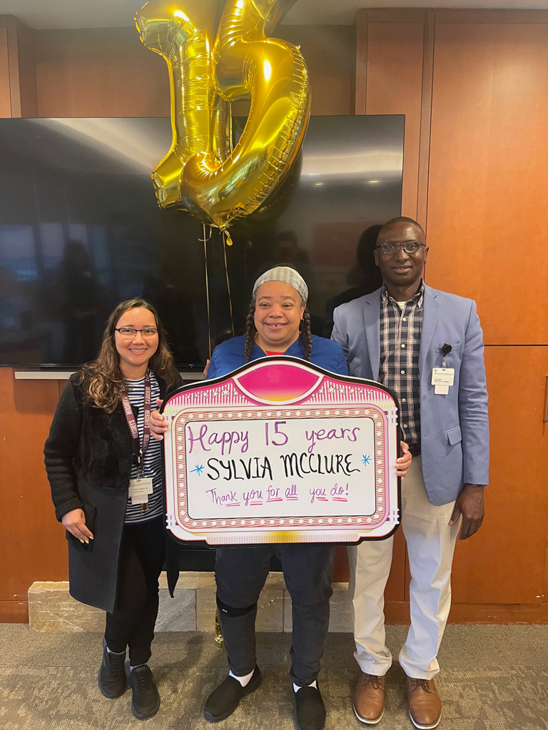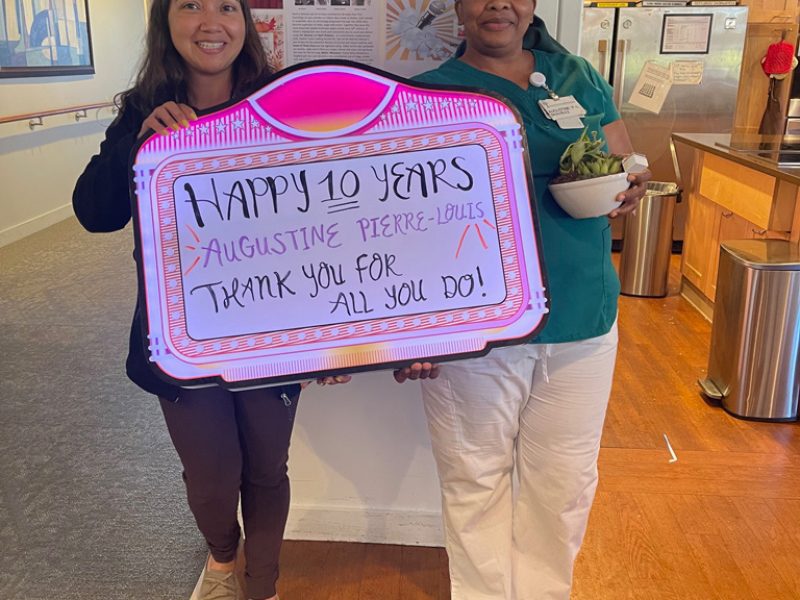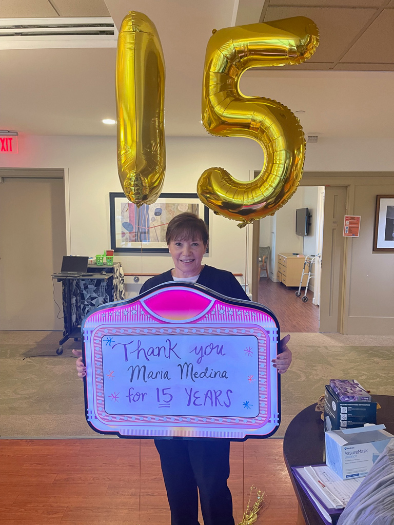 We held a festive celebration in honor of staff anniversaries. Congratulations to our wonderful CNA’s: Sylvia McClure for 15 years; Augustine Pierre-Louise for 10 years and Maria Medina for 15 years. Thank you for all that you do!