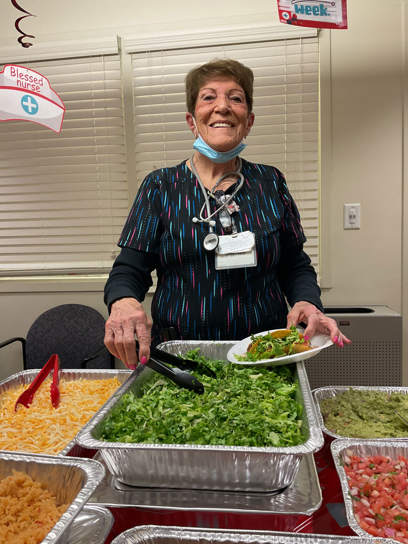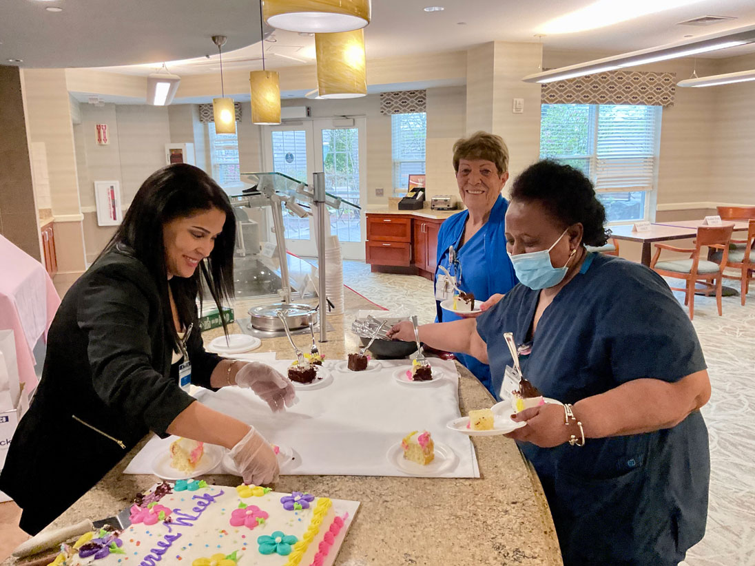 The Peabody campus hosted activities for this year’s Nursing Home Week in honor of the remarkable nurses in our organization. Our staff were delighted to sample specialties from the renowned Kowloon restaurant in Saugus. Kowloon brought their mobile truck for lunch for all Brudnick employees. Residents were treated to delicious root beer floats while listening to Zigy, one of their favorite entertainers. In addition, memory and long-term residents had a great day outside in the courtyard enjoying a festive luau. Everyone agreed that the best part of the day was the fact that they were all together.